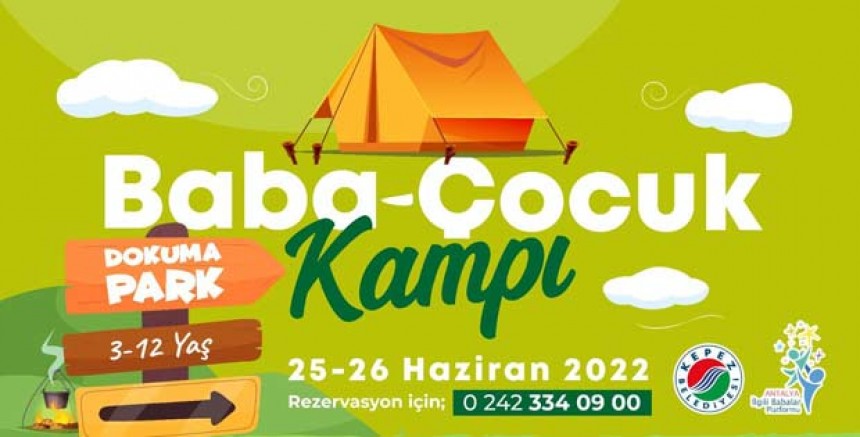 Kepez Belediyesi, 19 Haziran’da kutlanan Babalar Günü dolayısıyla ‘Baba- Çocuk’ etkinliği kapsamında unutulmaz bir kamp etkinliğine imza atıyor. Babalar gününü daha anlamlı hale getirmek ve çocuklarda doğa sevgisini geliştirmek için ‘Baba- Çocuk’ kampı düzenleniyor. Dokumapark’ın portakal bahçesinde gerçekleştirilecek olan ‘Baba- Çocuk’ kampı için sınırlı kontenjan bulunuyor. ‘Baba-Çocuk’ kampına 3-12 yaş aralığındaki çocuklar ile babaları katılabilecek. 25-26 Haziranda başlayacak ‘Baba- Çocuk’ kampına başvuru yapmak ve bilgi almak isteyen vatandaşların 0242 334 09 00 no’lu telefondan detaylı bilgi alabilirler.