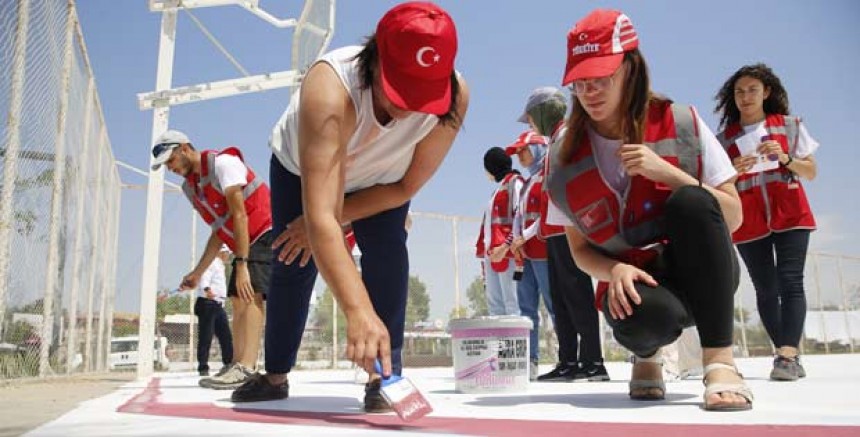 Şehre renk katmak istediklerini ifade eden Akdeniz Üniversitesi Güzel Sanatlar Fakültesi Resim Bölümü Öğrencisi Didare Göçmen, “Basketbol sahasında boyama çalışması yaparak, daha renkli alanlar elde etmeye çalışıyoruz. Vatandaşların keyifle spor yapmaları için saha zemininde canlı renkler kullanarak motif çalışmalar yapıyoruz” dedi.