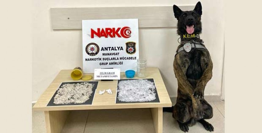Şüphelinin evinde narkotik arama köpeği Pars’la birlikte yapılan aramada dondurma kutusunda 70,77 gram, cam kavanoz içerisinde 150,74 gram ayrıca M.K.’nın üzerinde satışa hazır 2 paket haline 0 ,87 gram olmak üzere toplam 222.38 gram metamfetamin uyuşturucu madde ele geçirildi.